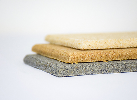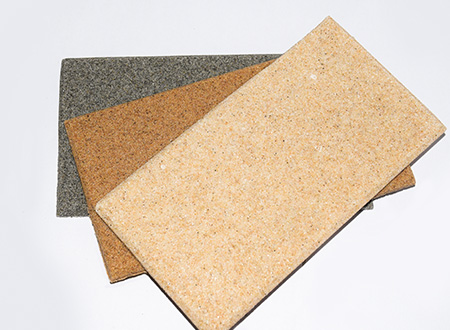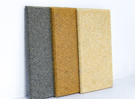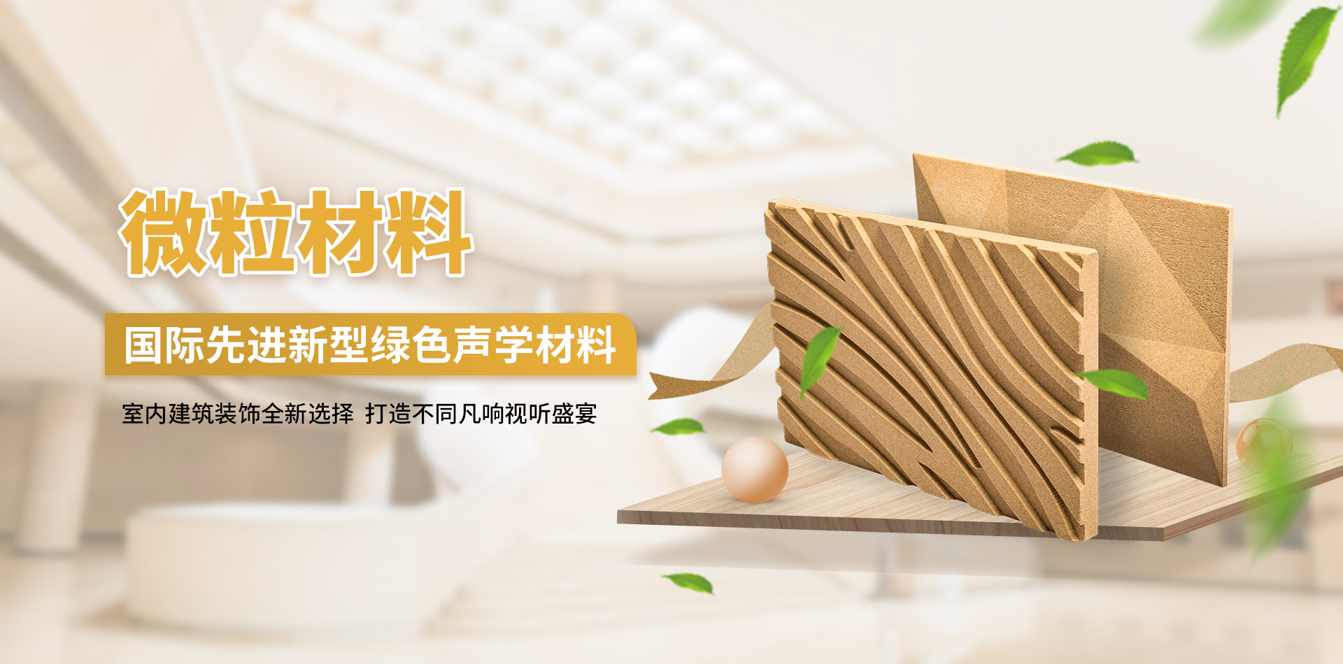 微粒材料是一种新型绿色装饰材料,具备优异的声学性和物理性能。该材料是以天然砂粒或经环保处理的固废颗粒为骨料,以环保胶凝剂,通过压振工艺,生产的具有大量相互连通的微小空隙的多孔材料。