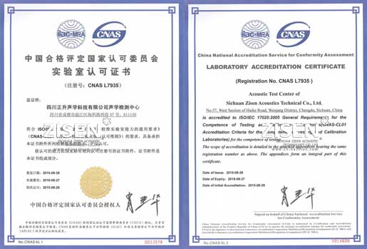 认可证书证明了公司声学检测中心符合ISO/IEC 17025:2005《检测和校准实验室能力的通用要求》(CNAS-CL01《检测和校准实验室能力认可准则》)的要求,具备承担证书附件所列检测服务的能力,予以认可。