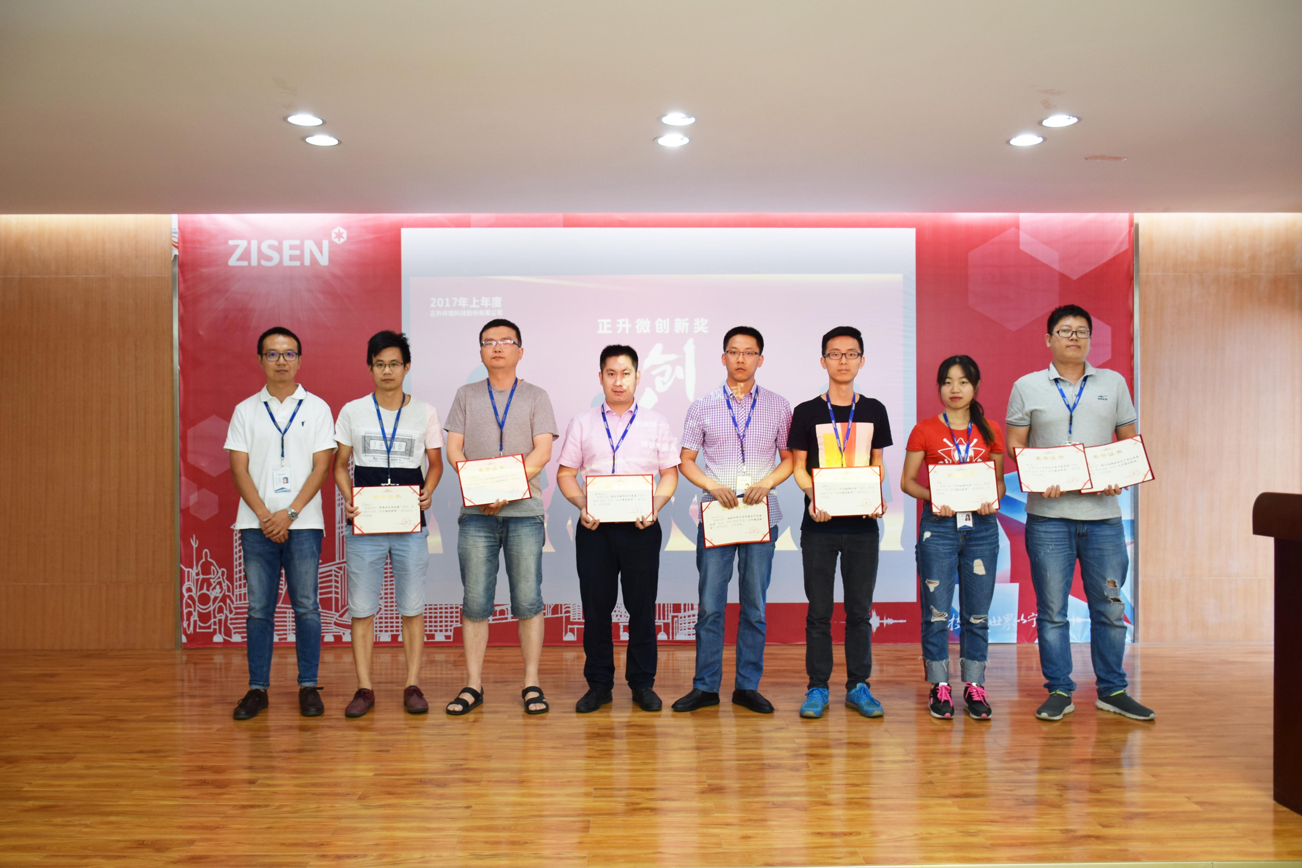 分享课结束后,公司进行了2017年上年度“正升微创新奖”颁奖仪式,由创新学院院长张晓杰分别为张奎、刘力、杨秀伍、何映氚、贺廷江、何青松等7位获奖代表颁发获奖证书及奖金。
