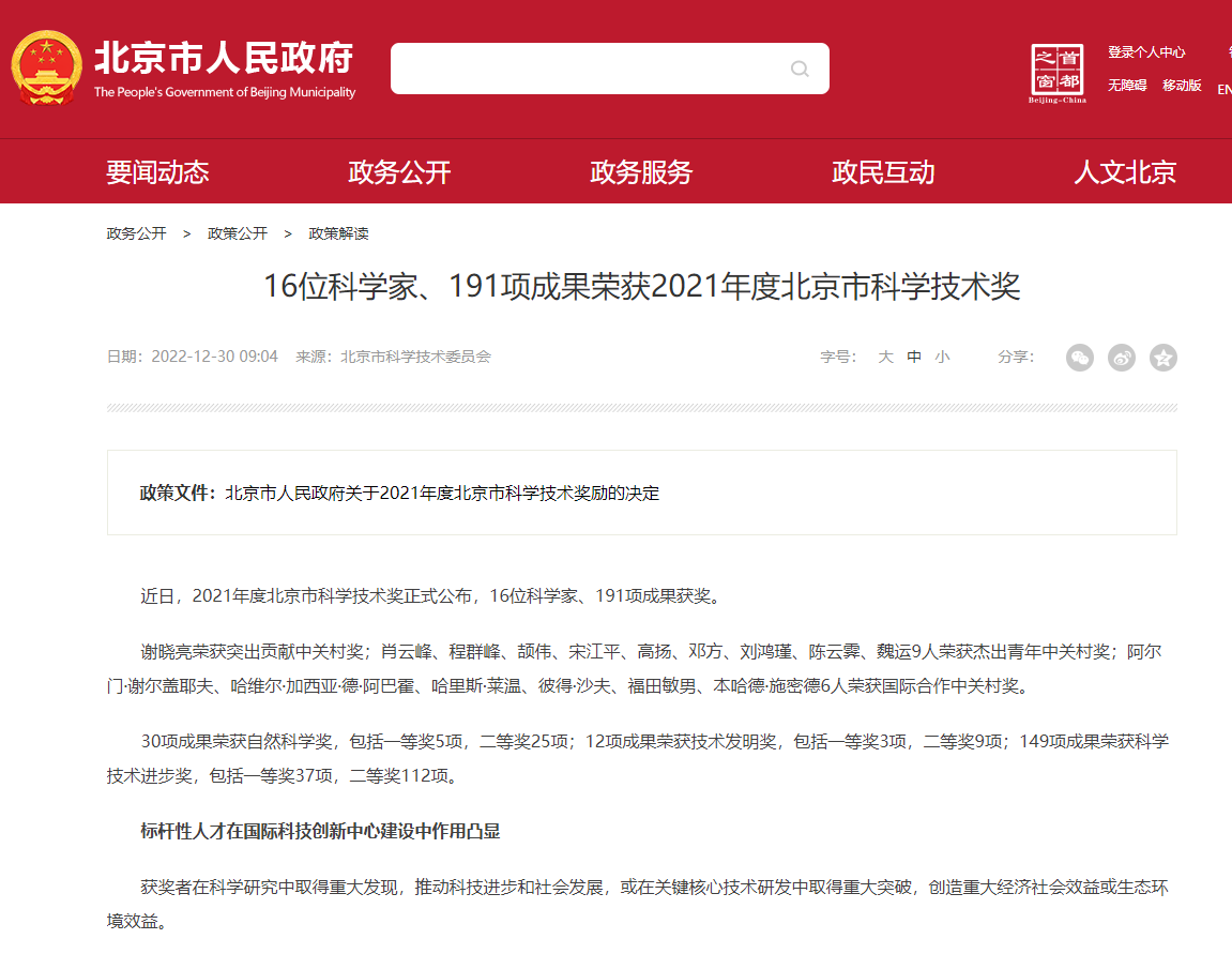 【喜讯】正升环境荣获北京市科学技术进步奖