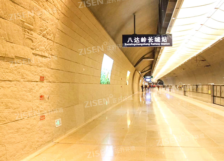 微粒吸声板独特的颗粒质感,以及表面的纹理设计,使文化元素和地域元素无痕融入站台,将八达岭长城沉淀的历史厚重感完美展现,似乎在站内就能感受到长城的苍劲之风。